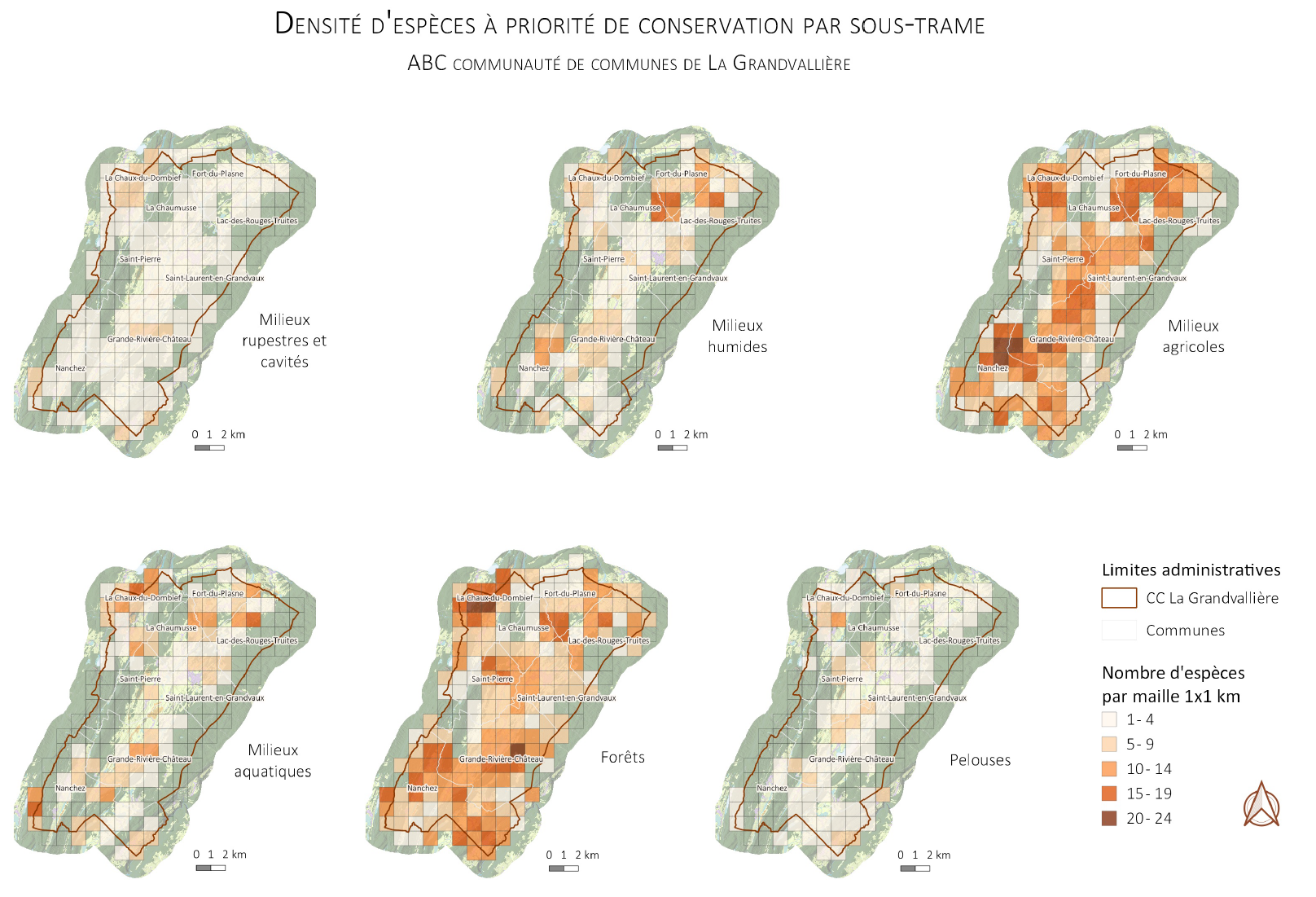 Des cartographies à l'échelle du territoire sont également proposées, en voici quelques exemples :